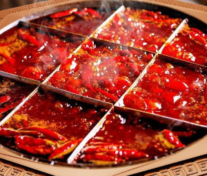 火锅是重庆特色美食之一。在此重庆火锅起源于明末清初嘉陵江畔的码头文化,纤夫以牛内脏搭配辣椒、花椒烹煮,形成“水八块”雏形。牛油红汤为灵魂,九宫格分区烹煮,毛肚、黄喉、鸭肠等鲜脆食材现杀现食,展现山城人对极致鲜辣的追求。其市井烟火气消弭阶层差异,围炉共食的场景承载情感联结,成为“火辣直爽”城市性格的缩影。如今,重庆火锅门店近3万家,覆盖全球50余国,全产业链年产值超4000亿元,从防空洞铝盆到网红爆款,始终延续着传统与现代交融的滚烫生命力。